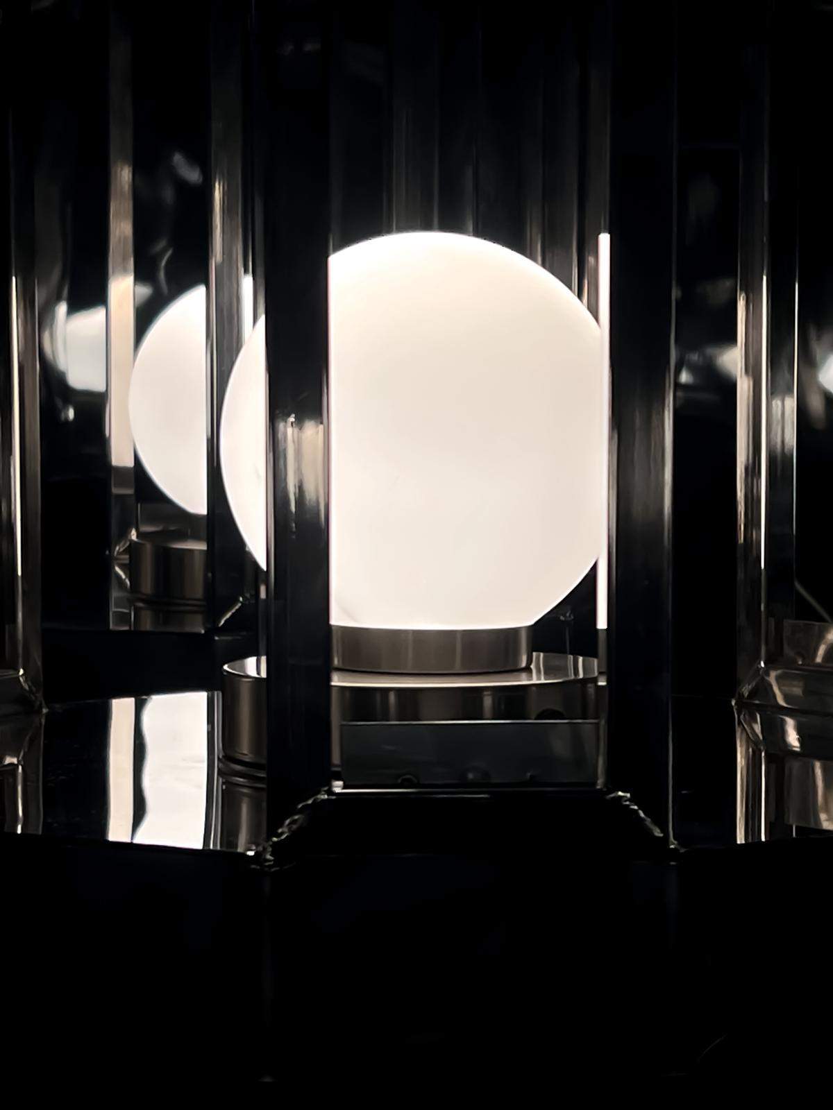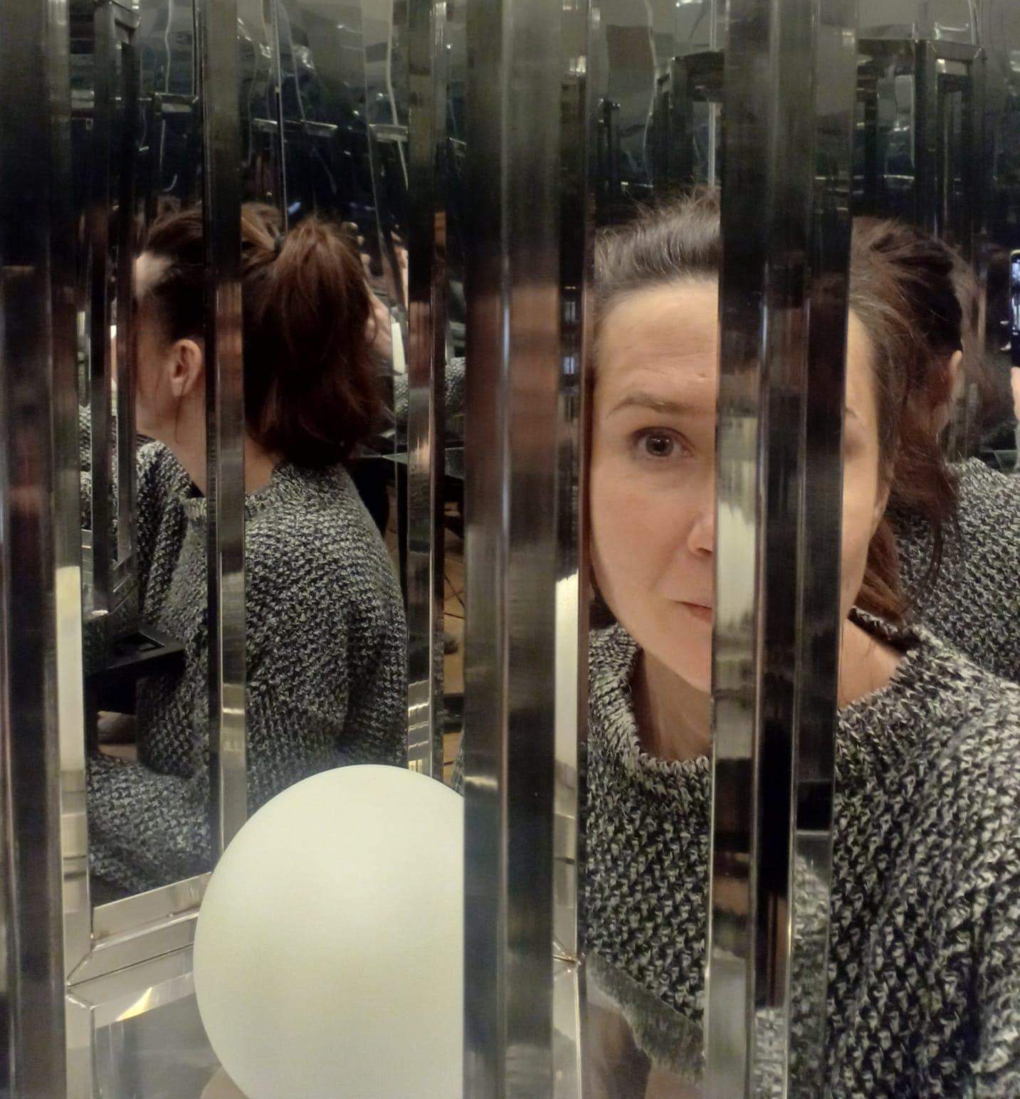Światło symbolizuje tę część mnie, którą staram się pielęgnować i chronić. To dobra energia, którą dzielę się ze światem, rodziną, znajomymi, klientami, współpracownikami. To również ta część mnie, nad którą teraz pracuję, by w jak najlepszej kondycji miała siłę świecić nadal. W lusterkach zobaczysz swoje odbicie. To metafora krążących w mojej głowie i sercu wszelakich oczekiwań pochodzących z zewnątrz. Poczucia bycia zwornikiem zbyt wielu spraw i relacji. Jeszcze, choć już w procesie, nadal nim jestem, próbując zachować balans między tym, co potrzebne tobie, a co absolutnie jest mi niezbędne. To praca odbijająca spojrzenie odbiorcy, budująca napięcie między wnętrzem, a zewnętrzem, zapraszająca do interakcji.